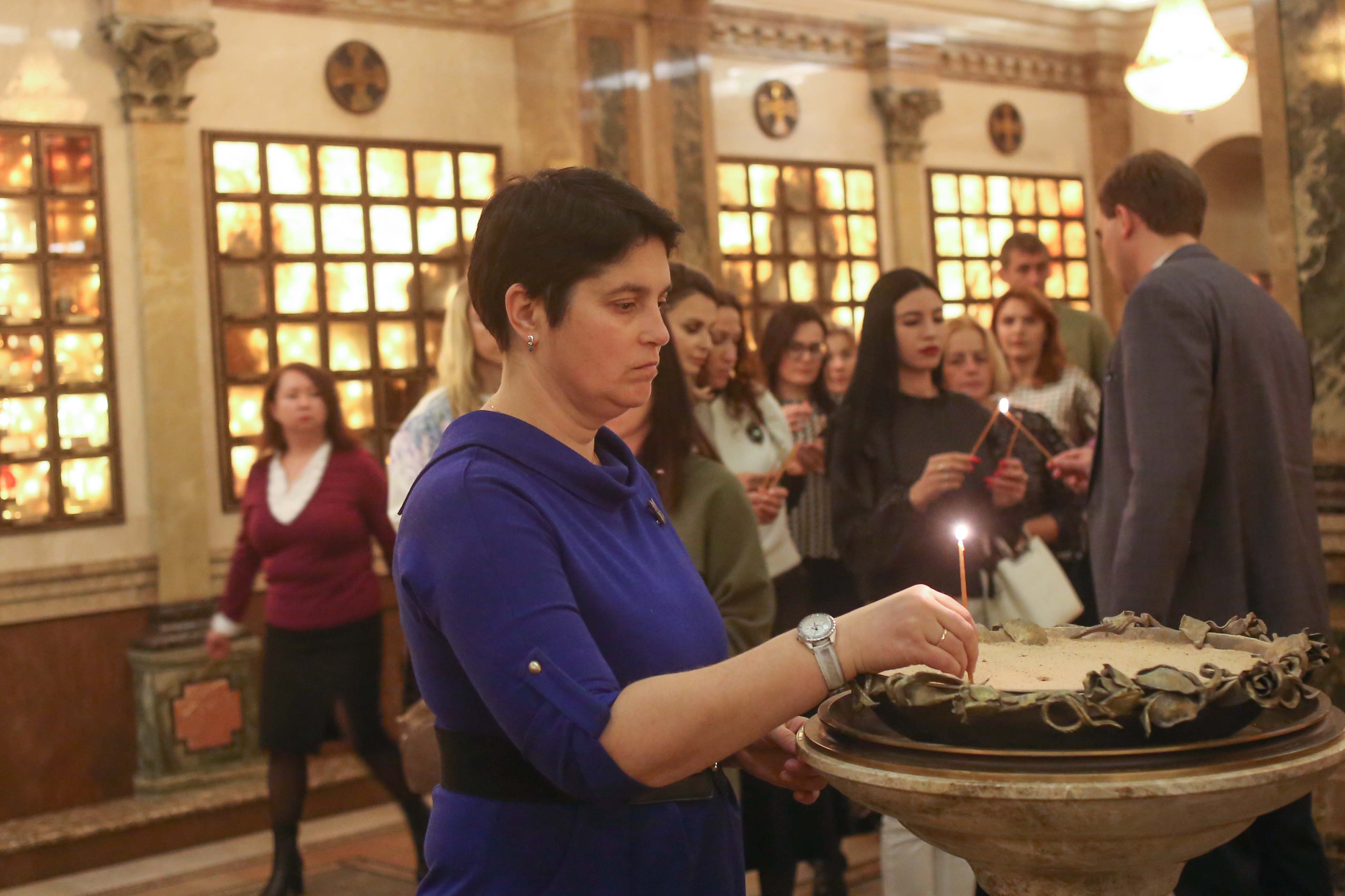 15 октября в Национальном мемориальном комплексе «Храм-памятник в честь Всех Святых и в память о жертвах, спасению Отечества нашего послуживших» прошло торжественное мероприятие для профсоюзных активистов и руководителей организаций фармацевтической промышленности Минщины. Мероприятие началось с награждения профсоюзных активистов организаций фармацевтической промышленности в рамках которого перед собравшимися выступила Председатель Минской областной организации Белорусского профсоюза работников здравоохранения Ольга Катова поблагодарившая коллег за ценный вклад в здоровье и благополучие нашего общества, своевременный доступ всех нуждающихся к необходимым лекарствам и медицинским препаратам. От имени Всехсвятского Прихода перед гостями Храма-памятника выступил иерей Николай Повный отметивший важность веры как неотъемлемого условия успеха любого начинания в жизни каждого человека. Программа торжественной части мероприятия также включала в себя выступление заслуженного коллектива Республики Беларусь «Музыкальная капелла «Сонарус»». После награждения сотрудниками Белорусского культурного центра духовного Возрождения для работников фармацевтической и микробиологической промышленности были проведены экскурсии по Крипте, постоянной экспозиции «Музей Памяти», Храму праздничного Богослужения. Ставшее традиционным участие сотрудников системы здравоохранения в жизни Храма-памятника свидетельствует о тесной взаимосвязи медицины и религии в непростой миссии сохранения и поддержания физического и ментального здоровья человека.
